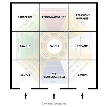 Ce nord symbolique est ensuite utilisé comme référentiel pour placer le ba gua et ses 9 domaines dans la maison.