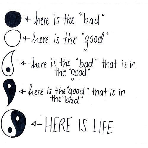 Le yin (noir) et le yang (blanc) sont souvent interprétés comme une dualité, deux forces en opposition : le bien et le mal, l’obscurité et la lumière, le négatif et le positif, le masculin et le féminin…
